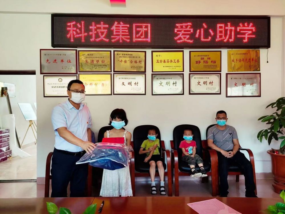 8月12日,廈門科技產業(yè)化集團“結對共建 愛心助學”活動走進集團駐村干部蹲點對口村——同安區(qū)蔗內村,集團黨總支書記謝勇堅將助學金、文具等送到兩名受助孩子的手中,并鼓勵他們努力學習,自信自強,用知識改變命運,用奉獻回饋社會。